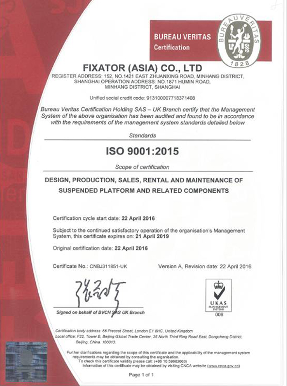 法適達通過ISO9001:2015質(zhì)量管理體系認證。