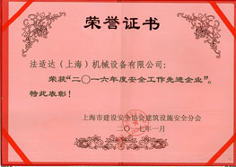 18012018 公司動(dòng)態(tài) 榮獲市“2017年度安全工作先進(jìn)企業(yè)” 法適達(dá)榮獲由上海市建設(shè)安全協(xié)會(huì)建筑設(shè)施安全分會(huì)頒發(fā)的“2017年度安全工作先進(jìn)企業(yè)”。... 更多>>